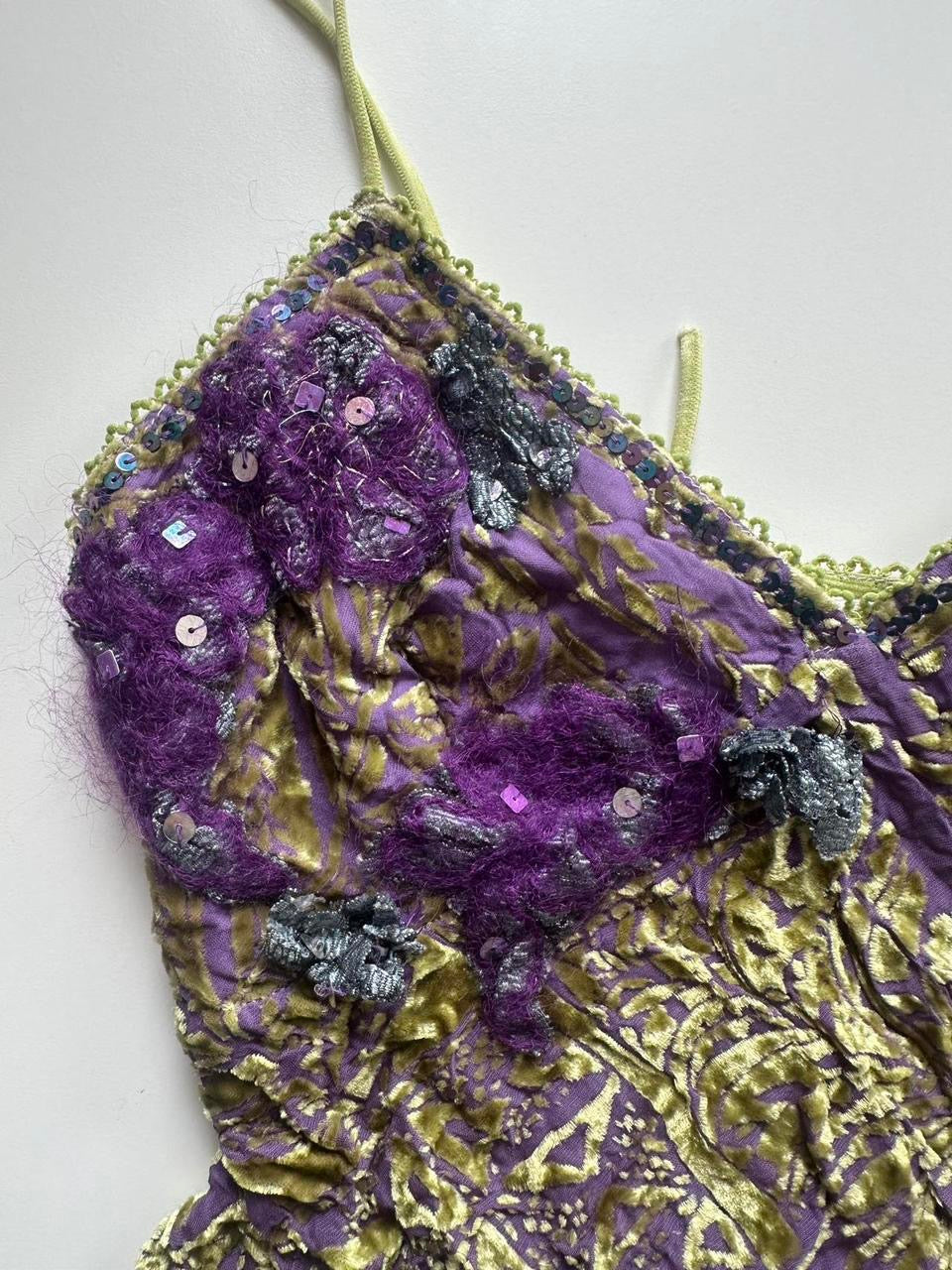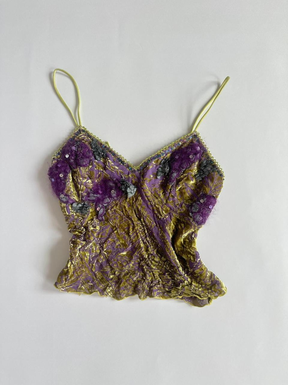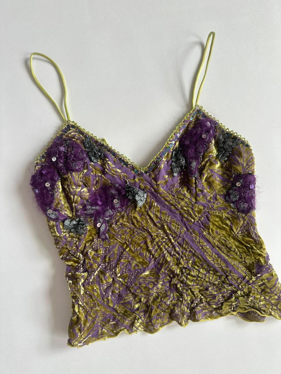 Italian vintage y2k green and purple flock embellished crop cami top by HUNZA