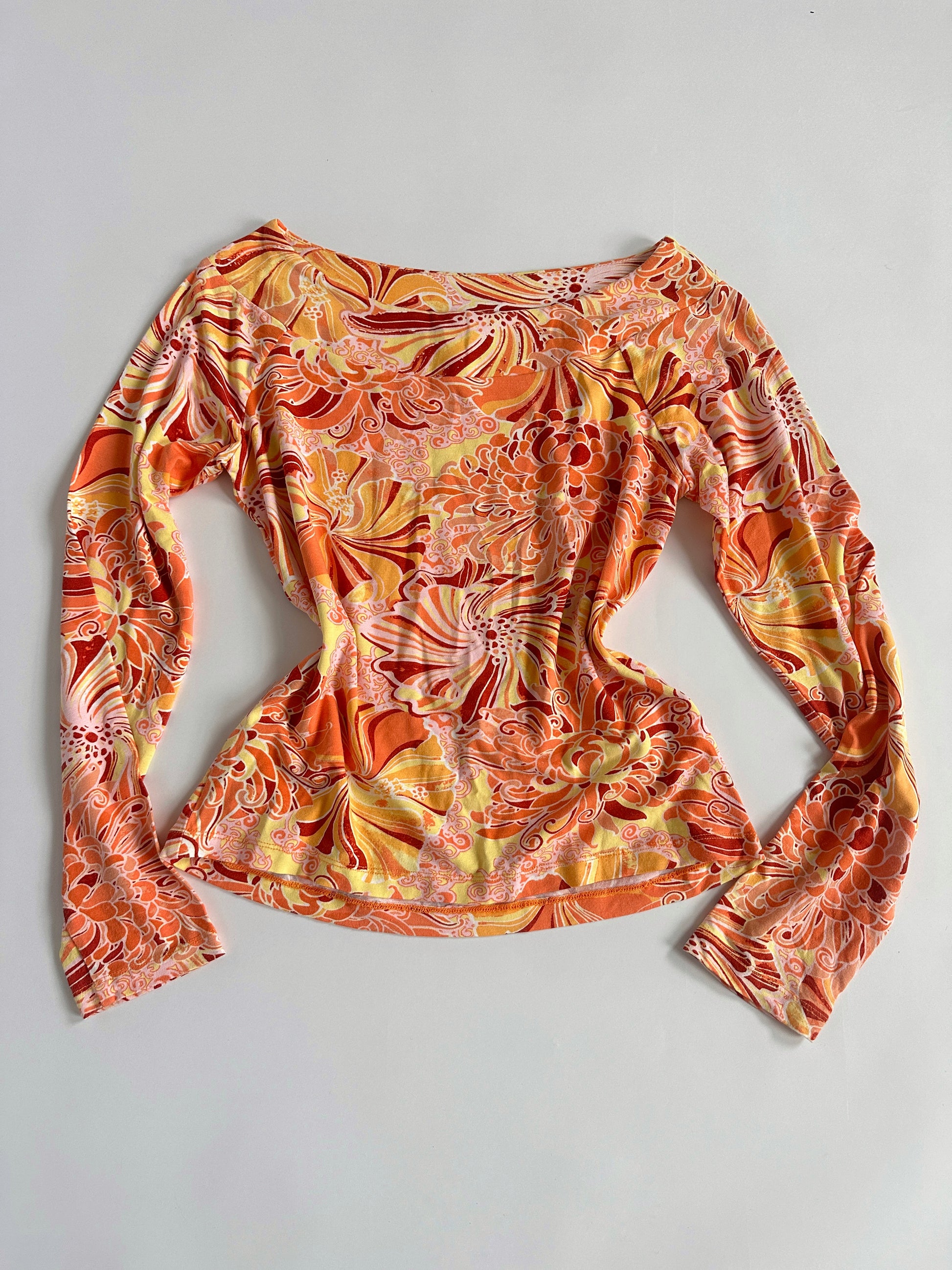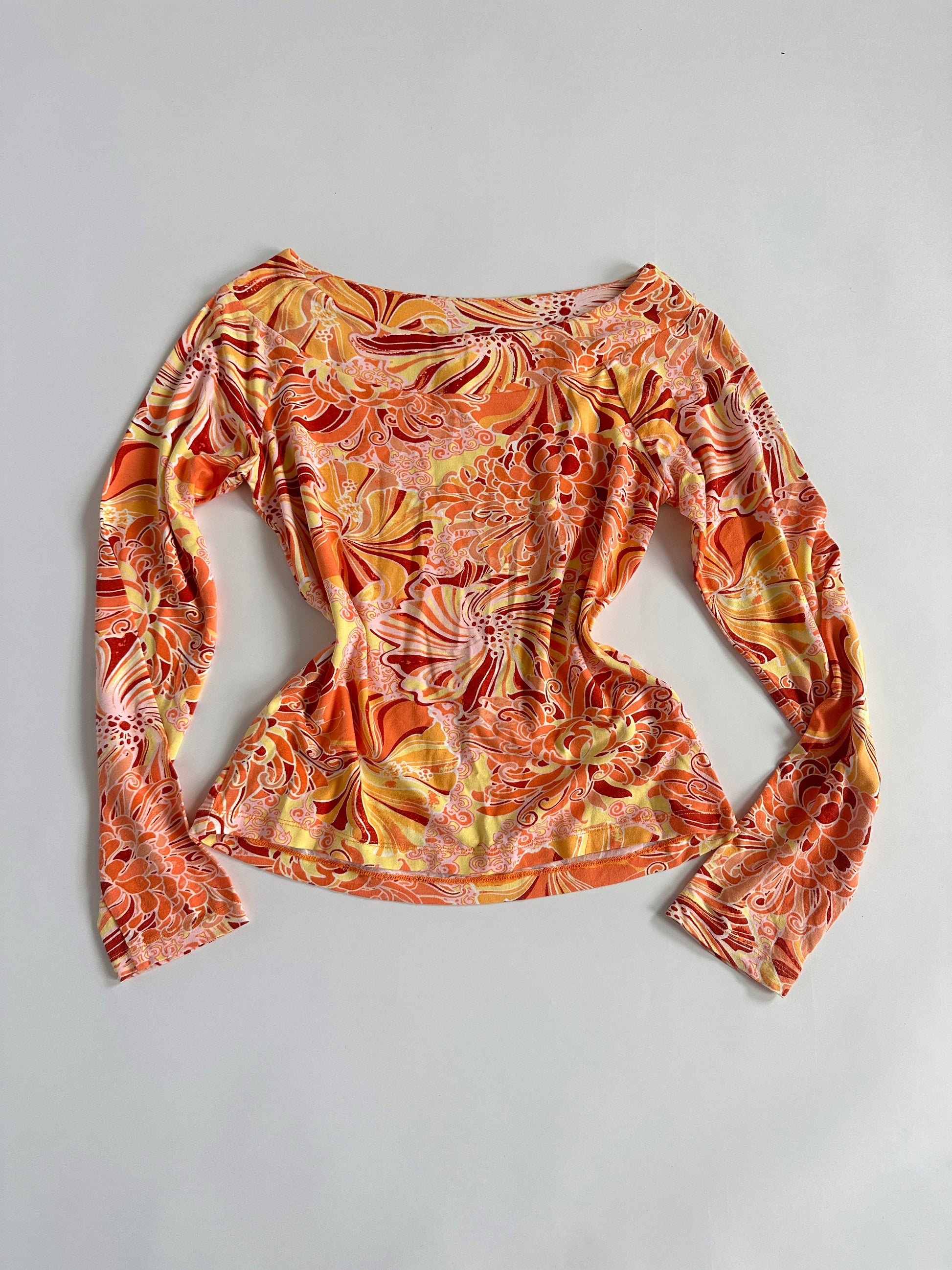Y2K Funky vibrant 60s pattern wide neckline top by MORE & MORE.